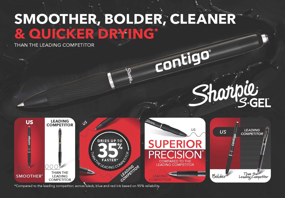 The Sharpie® S-Gel Pen offers an ultra-smooth writing experience with no smear, no bleed gel ink. With bold colors, a contoured grip, and a sleek matte finish, this pen delivers high-performance style and comfort for work, school, or home.
